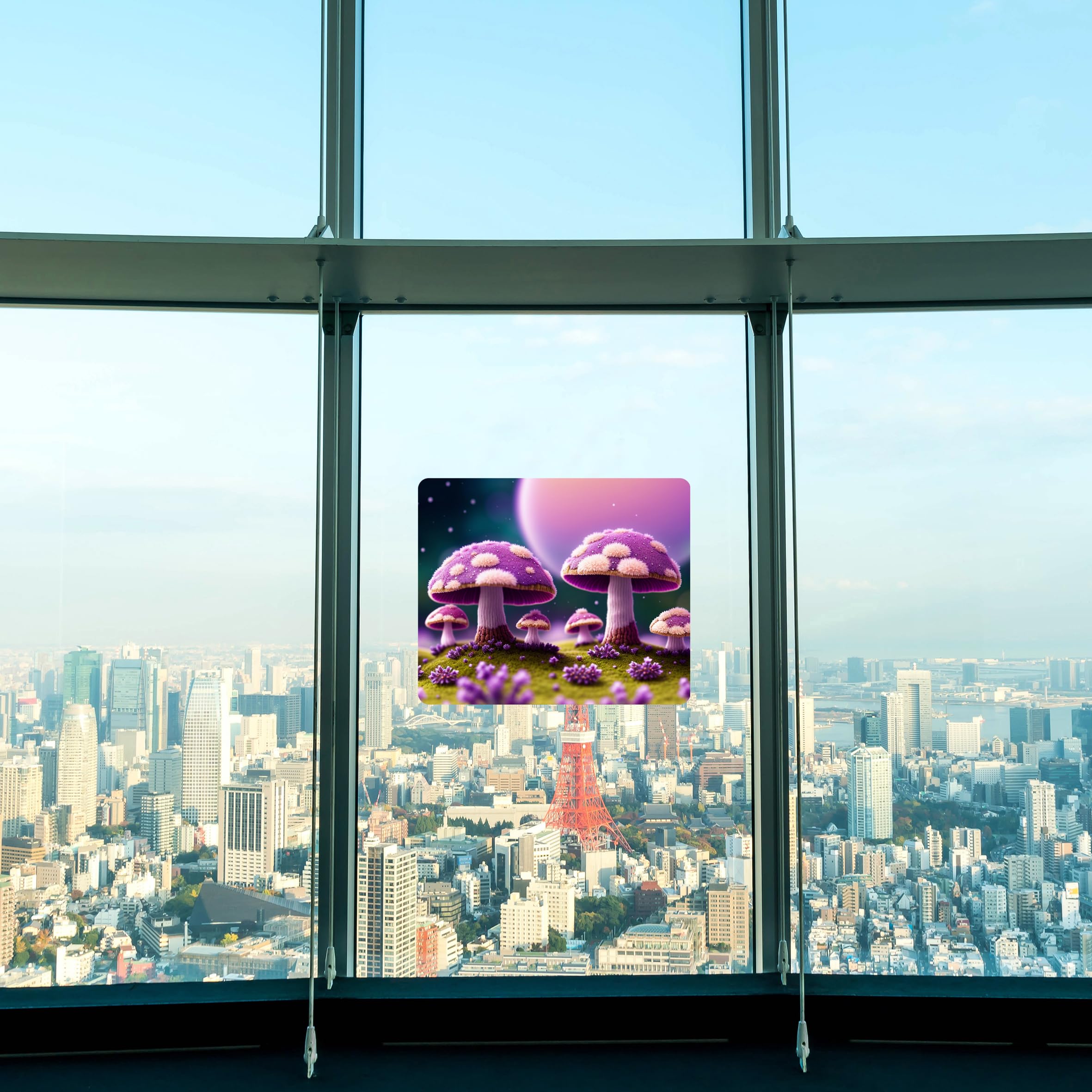 Bursting with color, the sunlight streams through each Panel generating explosive imagery throughout your room. Just place it near a window or stick it on with the suction cups provided, and watch the sunlight bring it to life. Our standard size of Sunlight Art® Panels is 11×11”, however, you can order any Panel in a custom size – 8×8”,15×15” or larger – on the site here. Each Sunlight Art® mixed-media image is printed exclusively on transparent panels.